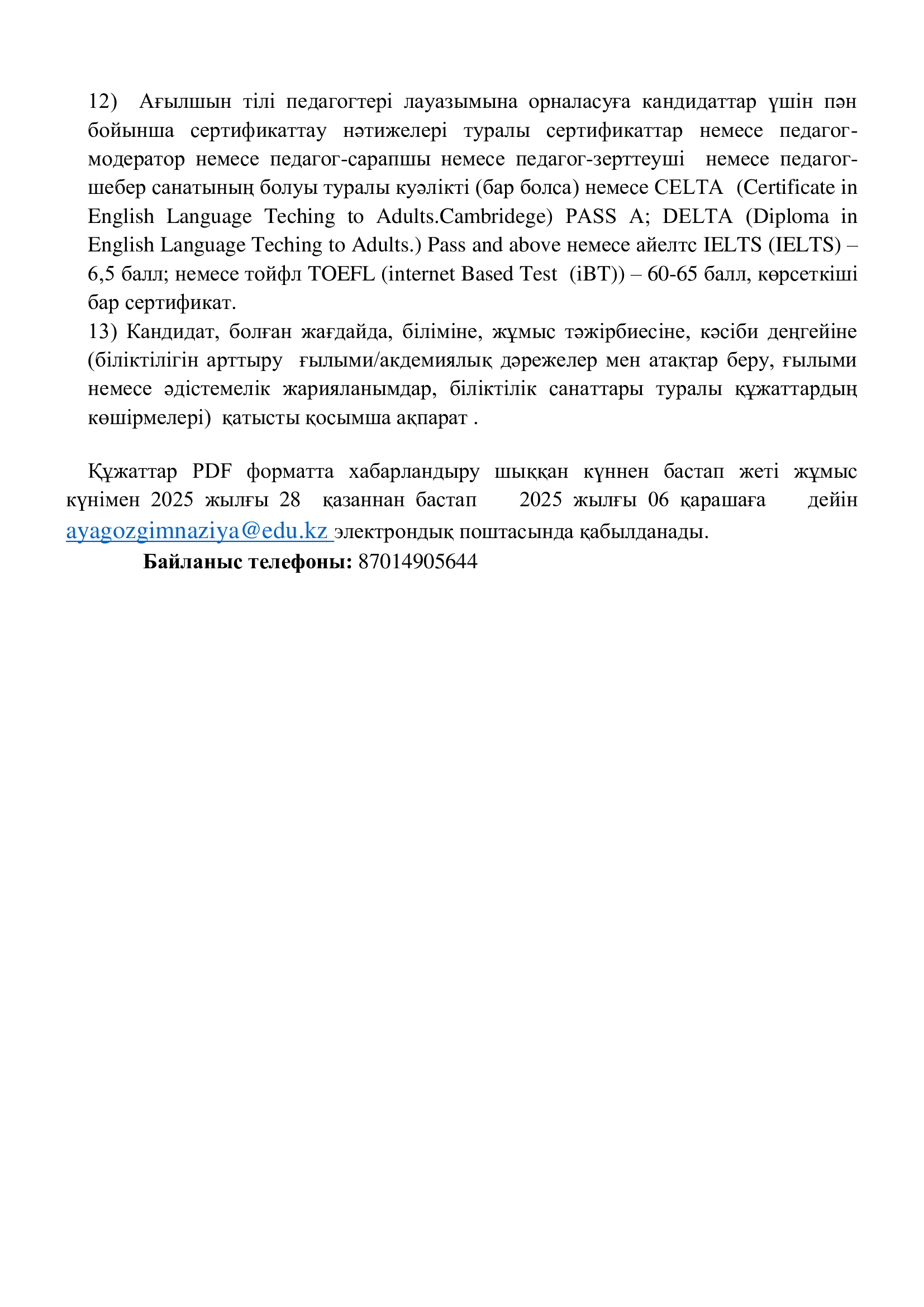 Абай облысы білім басқармасының Аягөз ауданы білім бөлімінің «Қалалық көпбейінді қазақ мектеп-гимназиясы»