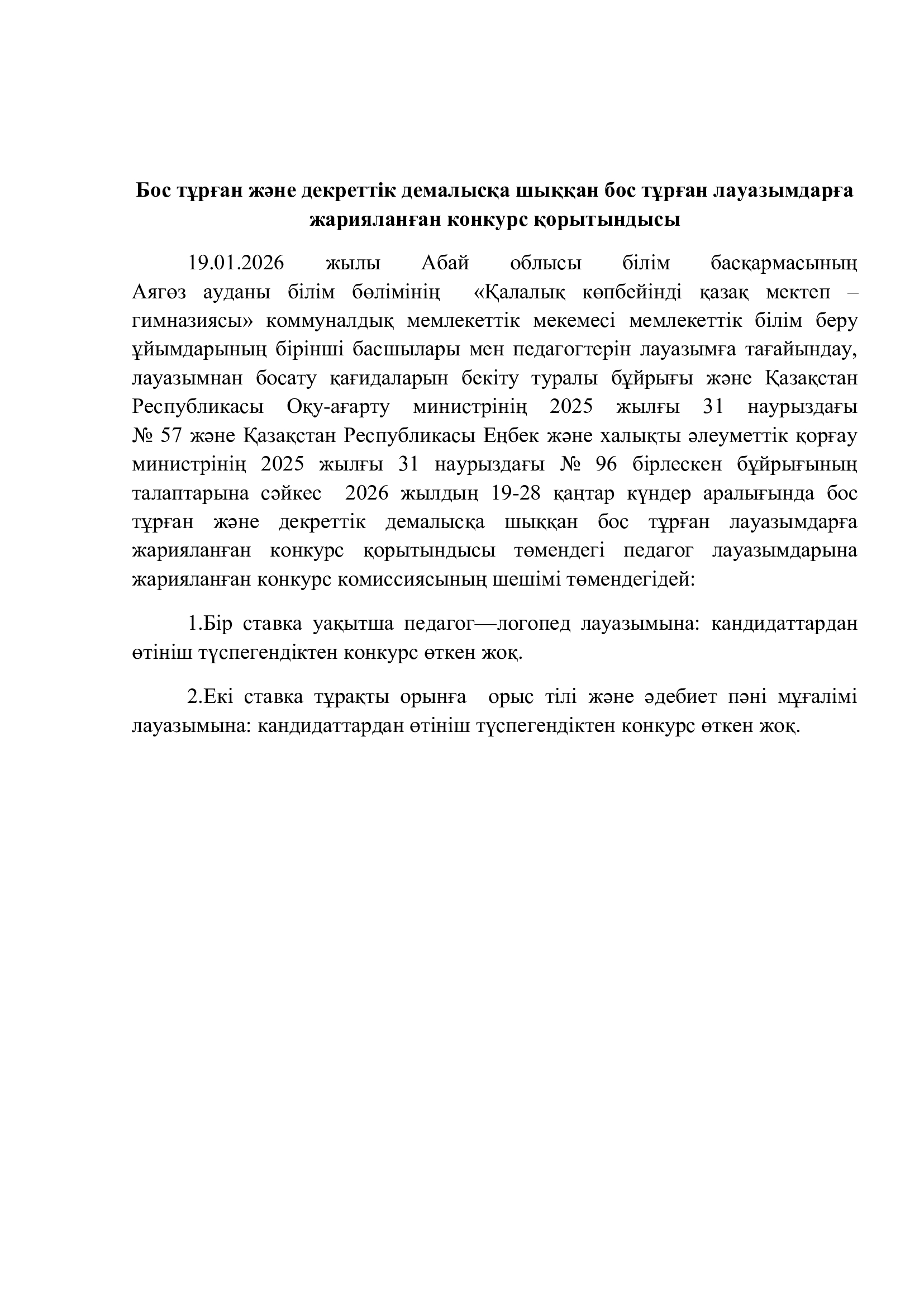 Абай облысы білім басқармасының Аягөз ауданы білім бөлімінің «Қалалық көпбейінді қазақ мектеп-гимназиясы»