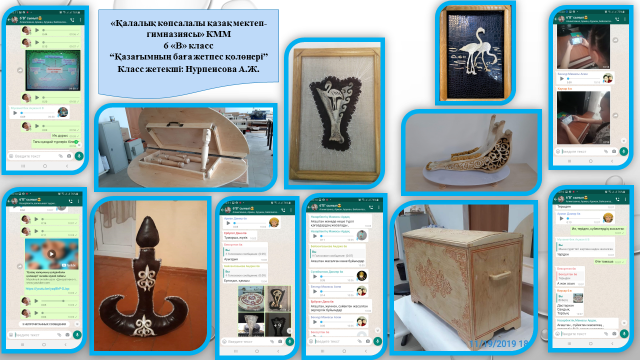 «Қалалық көпсалалы қазақ мектеп-гимназиясы» КММ-нің ағылшын тілі пәнінің мұғалімі Нурпеисова Ақтоты Жумагалиевна және«Қалалық көпсалалы қазақ мектеп-гимназиясы» КММ-нің директордың тәрбие ісі жөніндегі орынбасары Бекказина Марина Амангелдіқызының ұйымдастыруымен "Рухани жаңғыру" бағдарламасы аясында "Қазағымның баға жетпес қолөнері" атты виртуалды саяхат өткізілді.