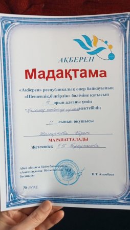 2025 жылдың 10 қазанында шығармашыл оқушылар арасында республикалық ”Ақберен” өнер байқауының аудандық кезеңі аталып өтті. Бұл байқауда “Ұлттық аспапта өнер көрсету” бөлімінде 10 “А” класс оқушысы Дүйсенгелдин Арнұр І орын, жетекшісі: А.А.Бимуханова, “Көркемсөз оқу” бөлімінде 8 “В” класс оқушысы Оңғартай Айару ІІ орын, жетекшісі: Қ.Д.Идрышева, “Шешендік, білгірлік” бөлімінде 11 “В”класс оқушысы Жомартова Айзат ІІІ орын, жетекшісі: Г.Б.Тулеуханова жүлделі орындарға ие болды. Жеңімпаздар мен жетекшілерін құттықтаймыз!💐💐💐