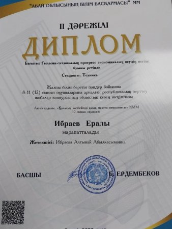 Мектеп сайты » О школе » Наши достижения » 2025 жылдың 19 қарашасында өткен Жалпы білім беретін пәндер бойынша 8-11 сынып оқушыларына арналған республикалық зерттеу жобалар конкурсының облыстық кезеңінде 10 “А” сынып оқушысы Ибраев Ералы ll орын жүлдегері атанды. Жетекшісі : Ибраева Алтынай