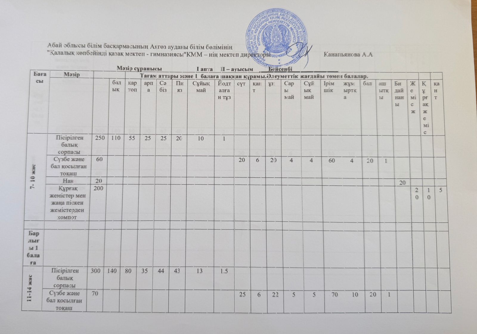 » 04.09.2025 жыл ас мәзірі