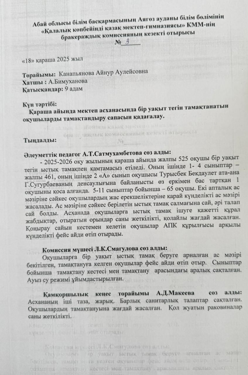 № 3 Бракераждық комиссия мүшелерінің отырысының хаттамасы