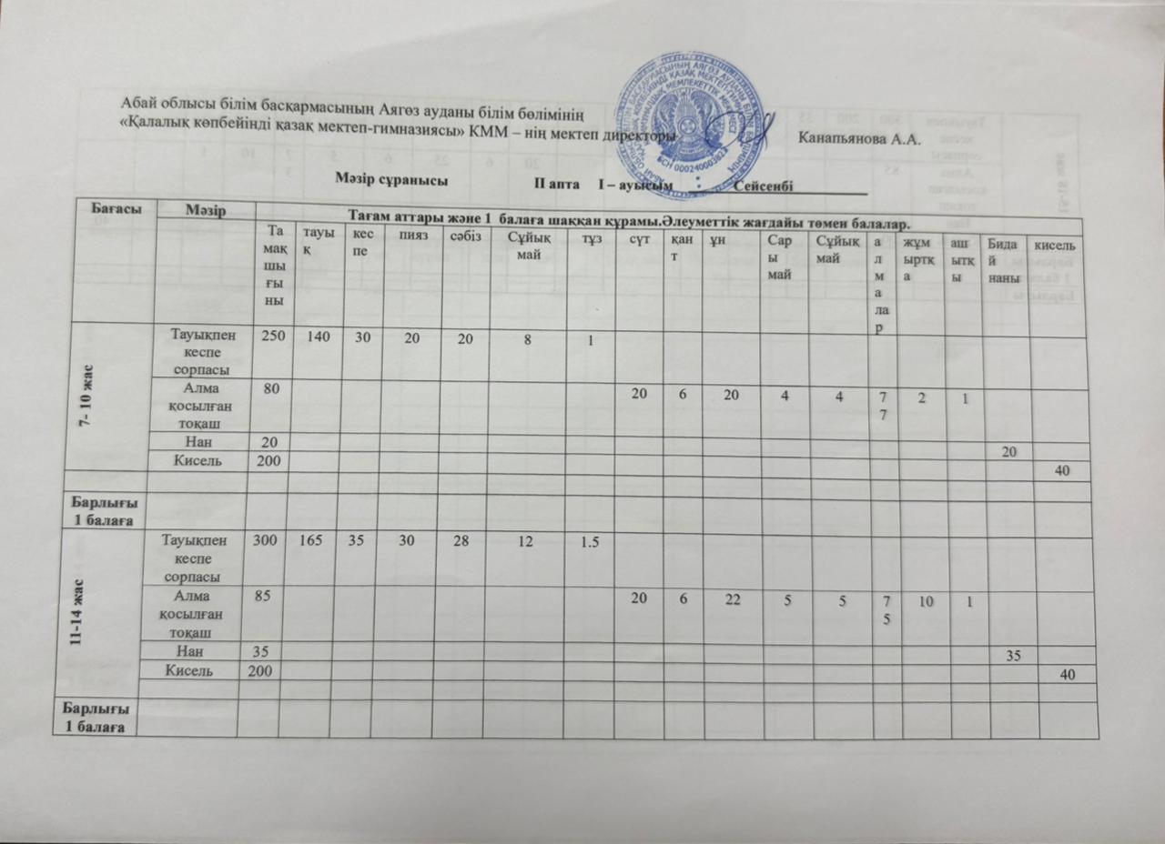 23.09.2025 жылының ас мәзірі