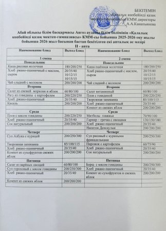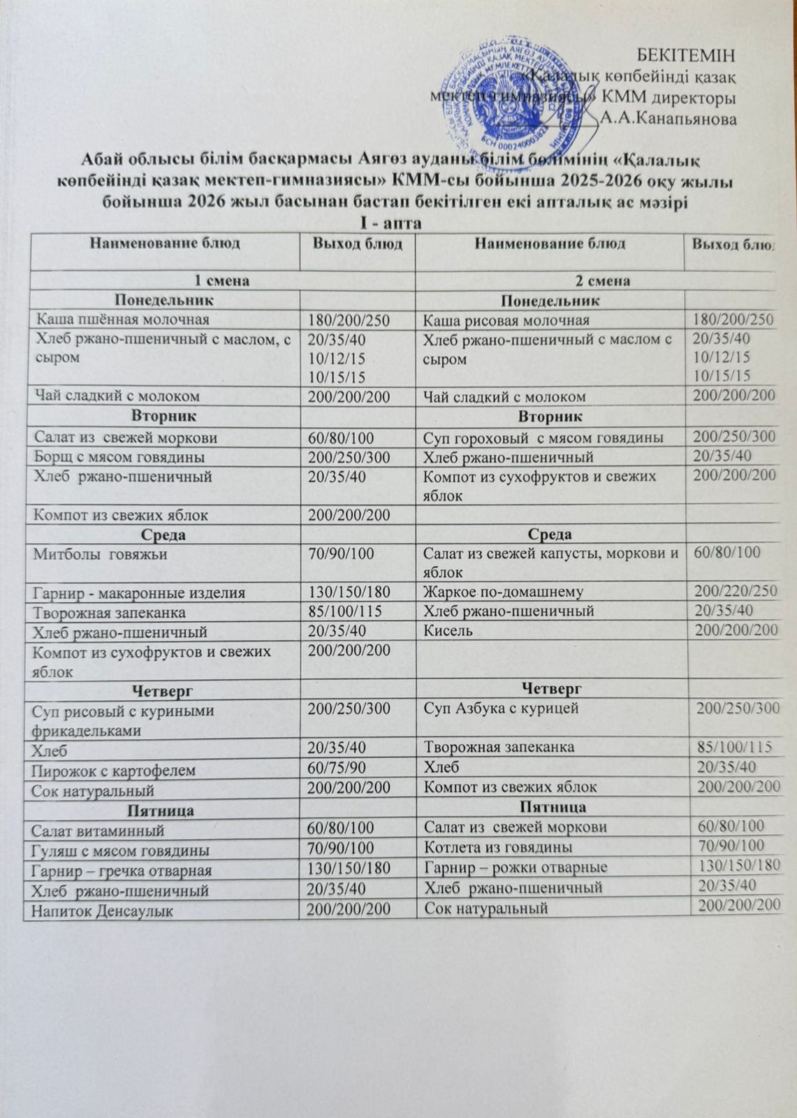 » 2026 жылға арналған жаңа екі апталық ас мәзірі