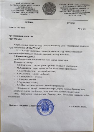 2025-2026 оқу жылына бір реттік ыстық тамақты ұйымдастыру туралы